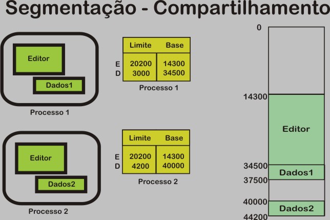 Figura - Áreas compartilhadas em uma memória segmentada